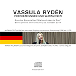 Vassula Rydén spricht am 23.10.2011 in Berlin, Palais am Funkturm, über Prophezeiungen und Warnungen in den Botschaften "Wahres Leben in Gott". Unser Glaubensabfall und unsere Rebellion gegen Gott - Zeichen der Endzeit (vgl. 2. Thess.2) - bringen die Welt an den Rand des Abgrunds. Wir bemerken zwar, dass die Welt immer mehr von Kriegen, Naturkatastrophen, Finanzkrisen etc. erschüttert wird, verstehen aber nicht, dass es an uns liegt, umzukehren, zu bereuen und uns Gott wieder zuzuwenden. Doch die Zeit drängt, und viele Menschen spüren das.